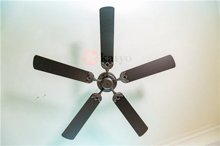 Quạt trần Kaiyo OKA 181 phiên bản màu đen tạo một điểm nhấn trong không gian nhà.